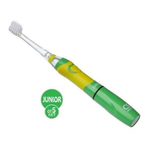 Электрическая звуковая зубная щётка подходит для детей в возрасте от пяти лет. Ручка имеет резиновую вставку и специальную эргономичную форму, удобную для маленьких детских ручек. Пользоваться прибором просто, управление состоит из одной кнопки. Через две минуты предусмотрено самоотключение, помимо этого срабатывает промежуточный таймер через каждые 30 секунд. Диодная лампочка чистящей насадки придаёт интригующее свечение насадке и делает чистку зубов интересной для ребёнка.