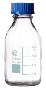 Предназначена для хранения химических реактивов. Изготовлена из химико-лабораторного стекла, крышка изготовлена из полипропилена. На горлышке есть уплотнительное кольцо. Градуированы до 400 мл.