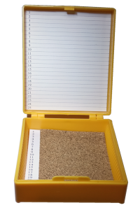 Штатив-бокс предназначен для хранения микропрепаратов на предметных стеклах размером 76 х 26 мм, толщиной 1 мм. Имеет подложку из прессованной пробки, нумерованные ячейки и поля для записи. Изготовлен бокс-штатив из полистирола. Индивидуальная упаковка. Рабочий диапазон температур - от -30 до +60°С.