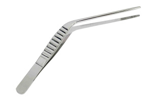 Пинцет ушной горизонтально-изогнутый - инструмент, применяемый при диагностических обследованиях на ЛОР органах, пинцет с узкими браншами, изогнутыми под углом по ребру.