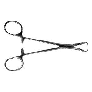 Зажим с кремальерой для операционного белья (цапка) используется как для фиксации операционно белья к ране, так и для удерживания белья на операционном столе или на столике при проведении необходимых манипуляций.