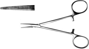Зажим кровоостанавливающий: общее наименование хирургических зажимов для пережатия кровеносных сосудов с целью временной остановки кровотечения; зажимы кровоостанавливающие имеют рабочие губки с мелкой насечкой и конической наружной поверхностью.