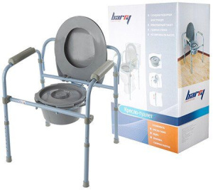 ХарактеристикиматериалСталь с порошковым напылением, гигиенический пластикшаг регулировки высоты2,5 смрегулировка высоты сиденья42—58 смрасстояние между поручнями52 смрегулировка по высоте63—79 смвес изделия7 кггабариты54х54х79 сммакс. нагрузка115 кггарантия6 мес.Цвет рамы – светло-голубой Регулируемое по высоте кресло-туалет с санитарным оснащением предназначено для ухода за людьми с частичной потерей функций опорно-двигательного аппарата. Кресло-туалет оснащен съемным судном. Складной каркас из стального сплава не подвержен коррозии и обеспечивает легкость конструкции. В сложенном виде кресло-туалет для инвалидов не занимает много места. Ножки кресла оборудованы насадками, предотвращающими скольжение. Судно и крышка из гигиенического пластика позволяют проводить санитарную обработку специальными средствами.